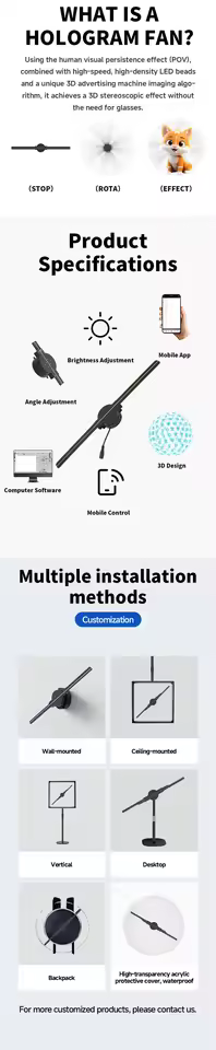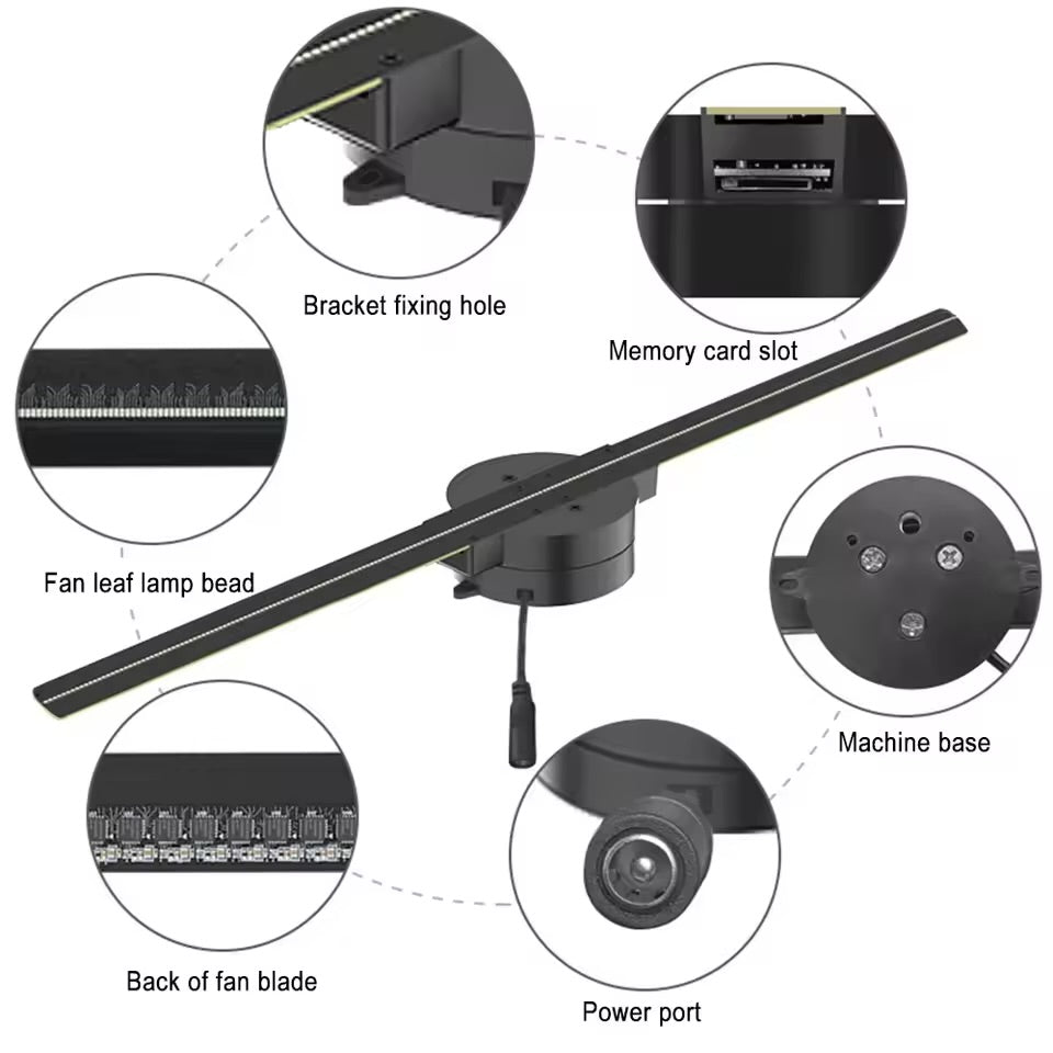 3D Holographic Fan Screen Stereoscopic Display Suspended Projection Lamp 42cm Suspended Imaging Advertising Machine