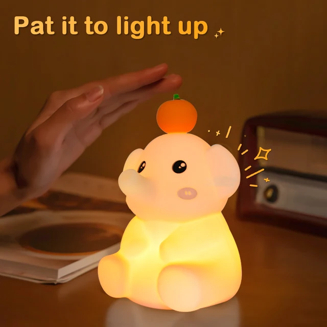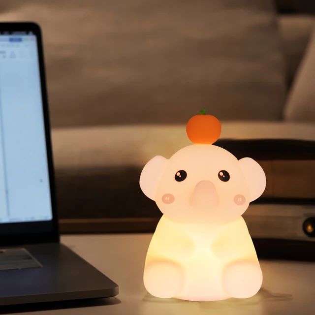 Children Silicone Night Light Cute Elephant Baby Dimmable Timed Sleeping Night Lamp for Bedside Bedroom Decoration Gift Birthday