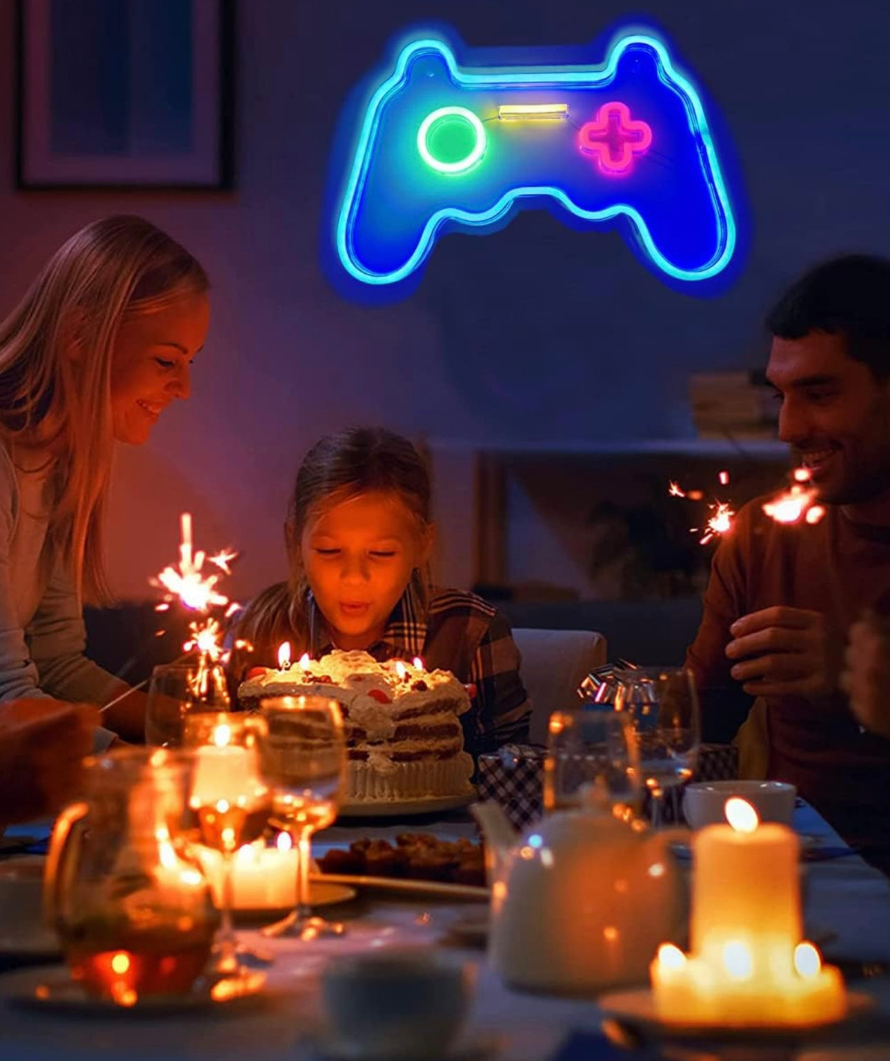 Game Led Signs Neon Gaming Lights for Gamer Room Decor,Light Up Gamepad Neon Signs Gifts for Teen Boy Room Bedroom Wall Decorations,16 x 11 Inch