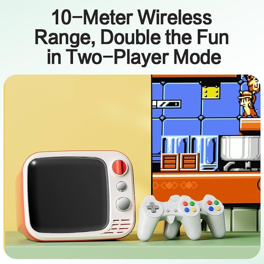 **Let Your Kids Have a Great Time** - For a more immersive experience, connect the retro game console to a TV, allowing your child to enjoy games on the big screen. This vintage gaming console comes with one 2.4GHz controller and supports both single-player and two-player games. (Note: Two-player mode requires the purchase of an additional gamepad.)