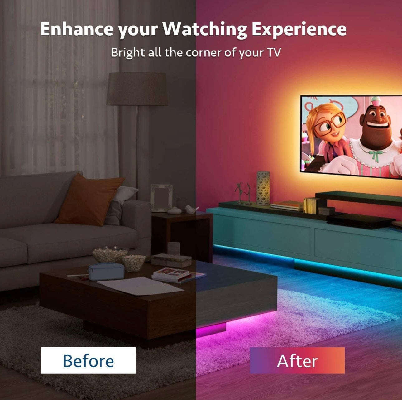 Easy installation with included AC adapter and remote control receiver. Plug and play. Self-adhesive tape fits on any dry, flat surface, making it flexible to install anywhere. No need for phone connection or app download. (Please test the product before installation)