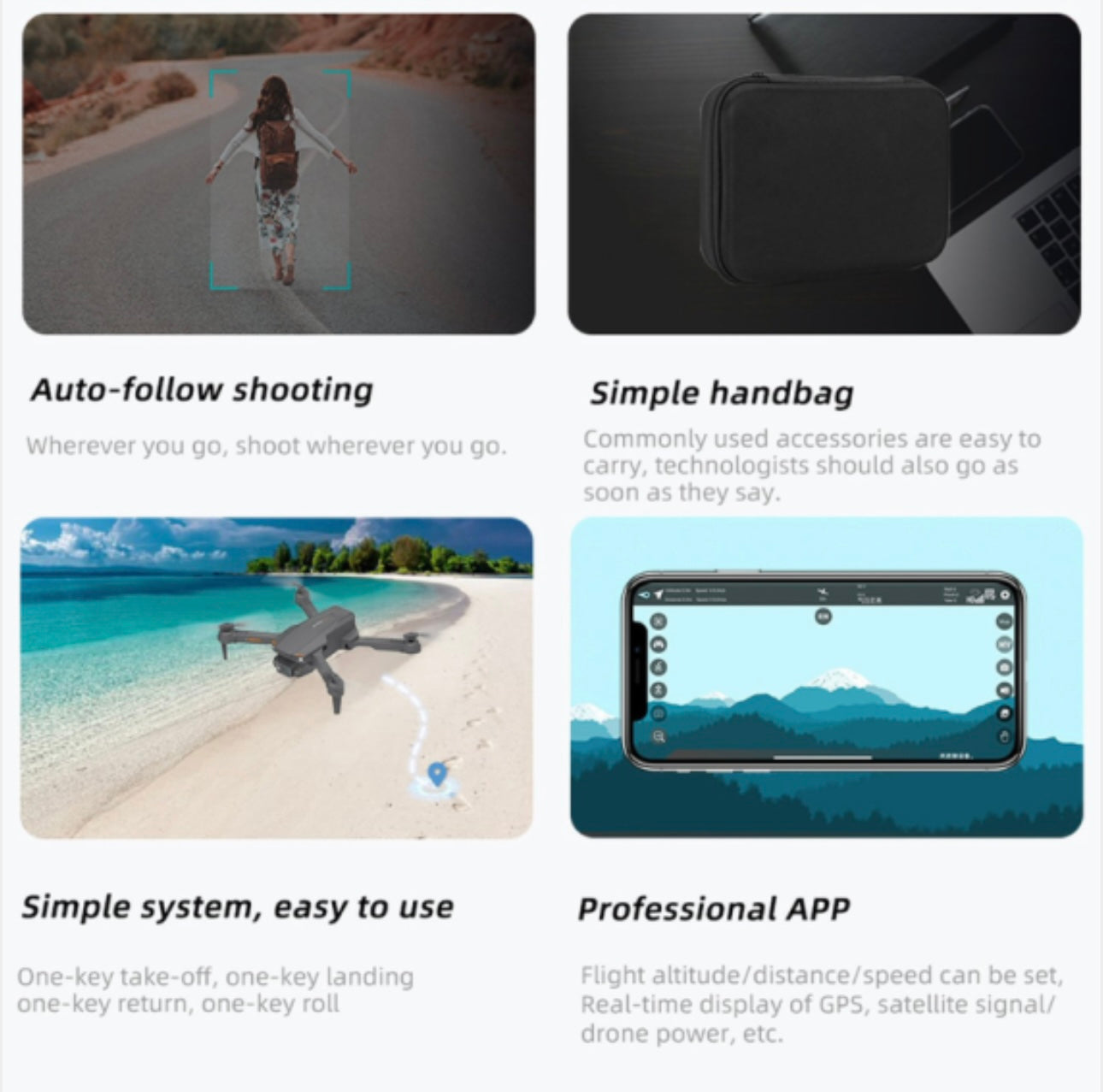 Compact Handbag Design: Designed for travelers, the PIHOT G6 is lightweight and compact, making it easy to carry on all your aerial adventures. It's the ideal companion for capturing stunning views on the go.
