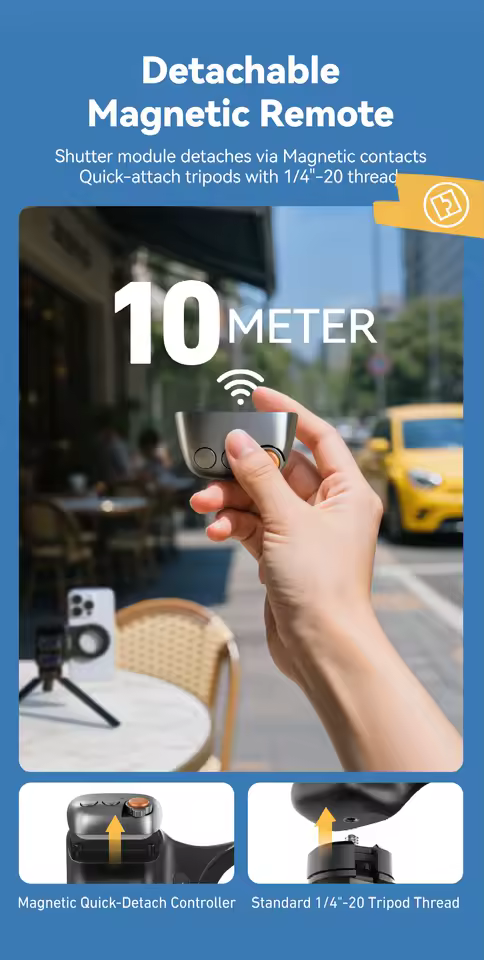 ✅ 360° Shooting Freedom – Detachable remote,